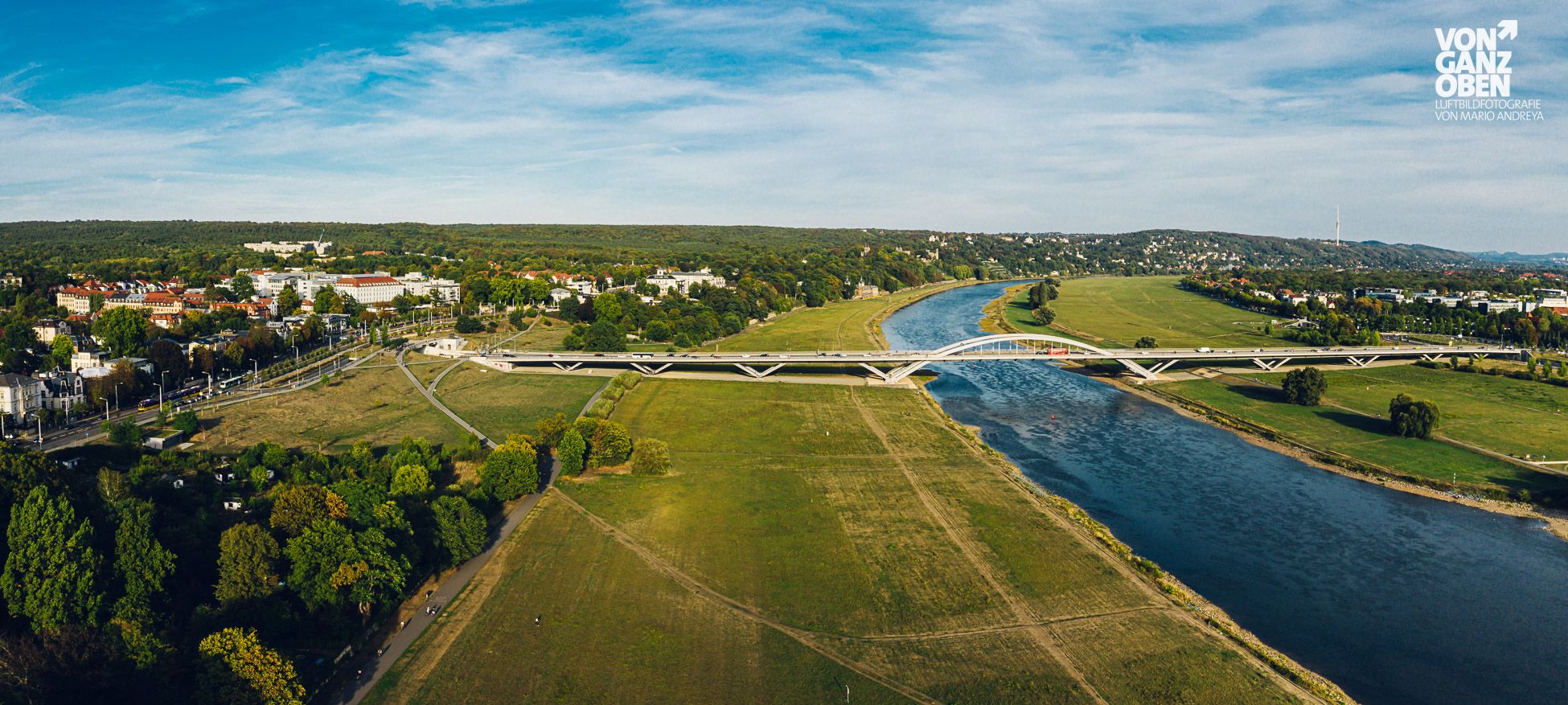Die Brücke überquert die Elbauen an einer von deren breitesten Stellen und gehört zum Verkehrszug Waldschlößchenbrücke mit den Anbindungen der Brückenköpfe an das Straßennetz – im Norden mit mehreren Tunneln – sowie den auszubauenden Zubringerstraßen; der Verkehrszug soll die Dresdner Neustadt und die benachbarten Brücken entlasten. Die Brücke ist am 24. August 2013 offiziell eröffnet worden.